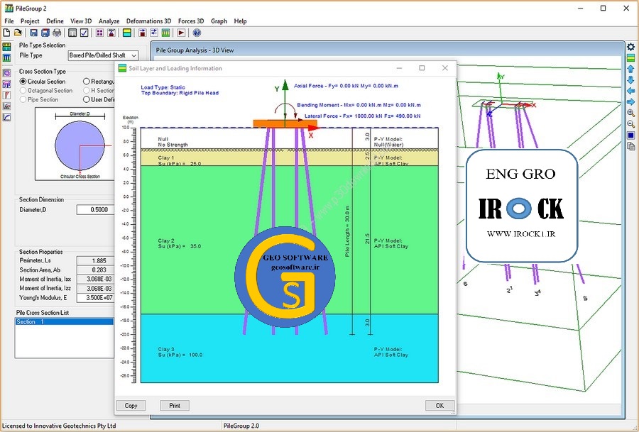 پک جامع آموزش نرم افزار اینوویتیو ژئوتکنیکس پایل گروپ Innovative Geotechnics PileGroup برنامه تحلیل و طراحی غیر خطی گروه شمع تحت بار جانبی